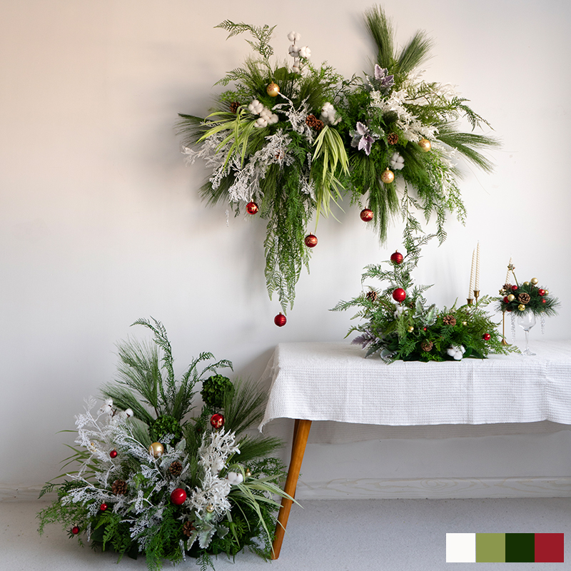 圣诞装饰布置壁挂仿真花地排花艺 店面橱窗商场活动节庆布置假花
