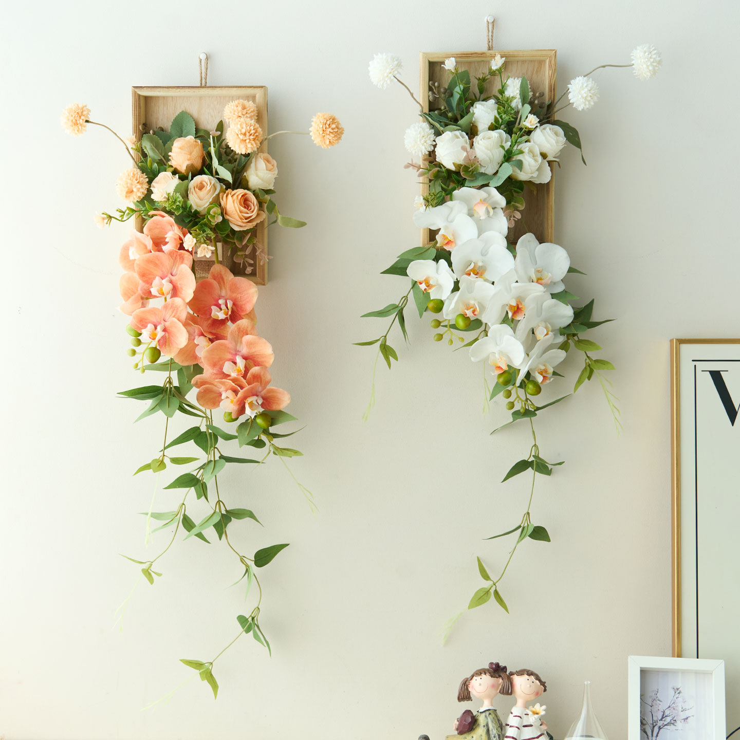 已陌小清新蝴蝶兰木制壁挂仿真花假花室内墙面遮丑改造壁挂装饰品