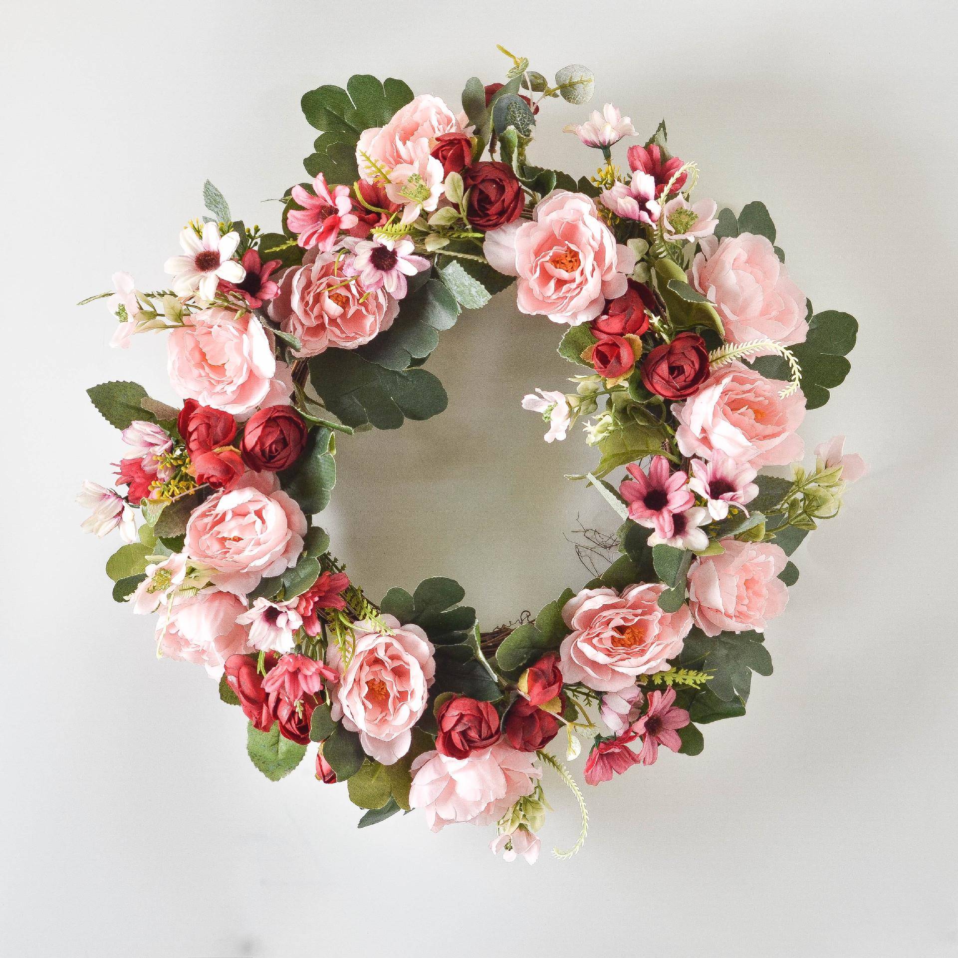 婚玫北欧壁挂仿真花环瑰家居挂饰庆花婚礼墙壁新款25公饰品厂家直