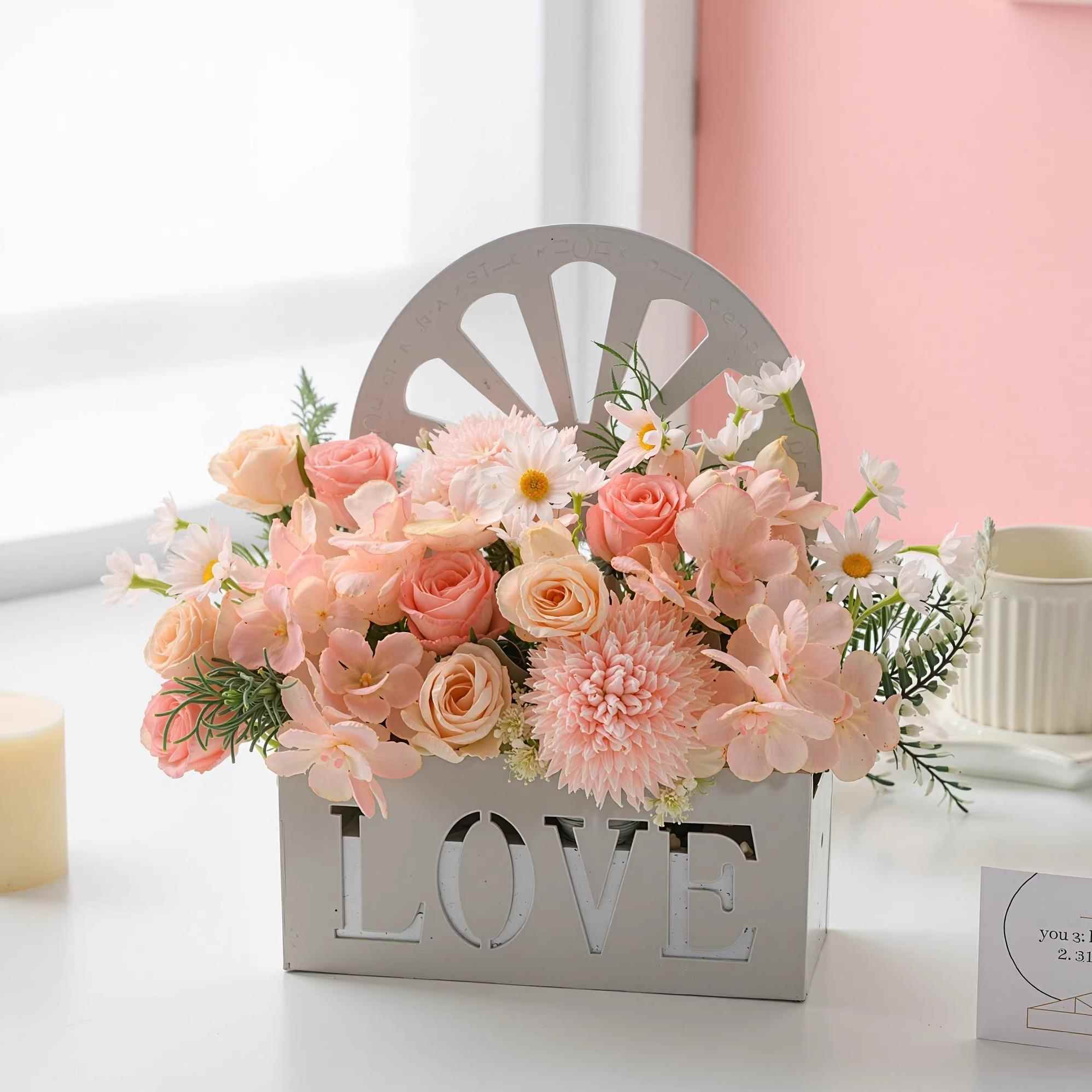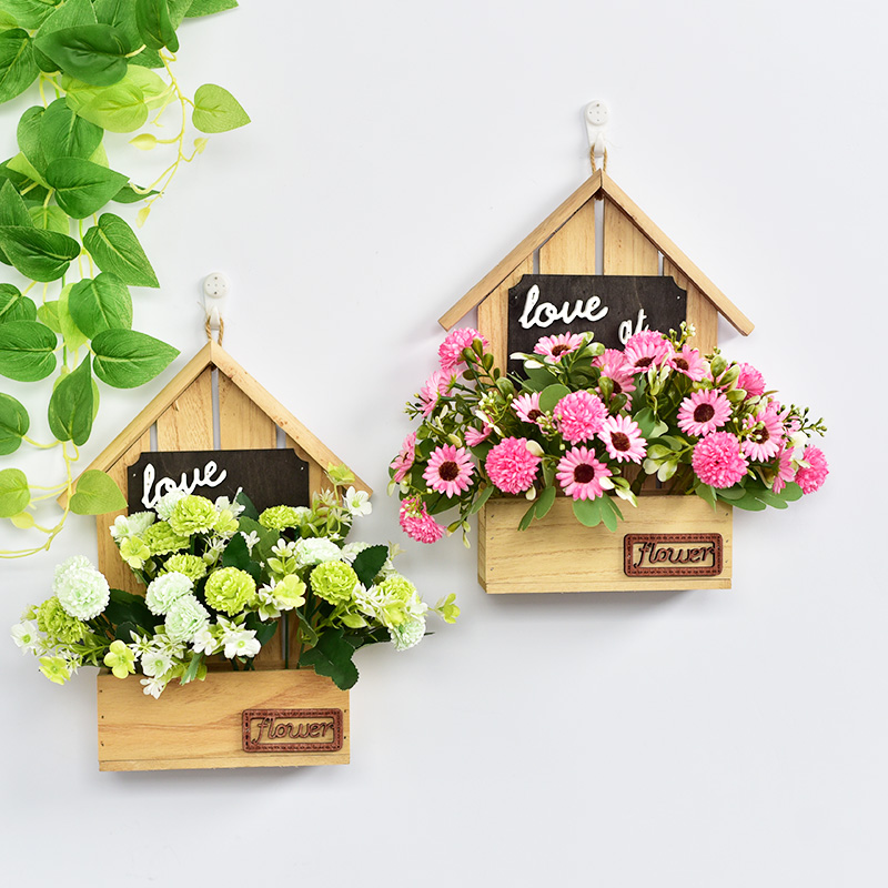 木质壁挂仿真花小房子形状幼儿园学校室内客厅墙面装饰花假花挂件