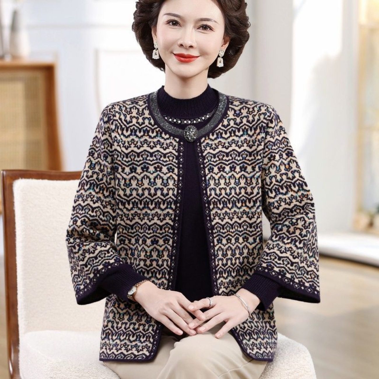 - 妈妈装羊毛衫开衫