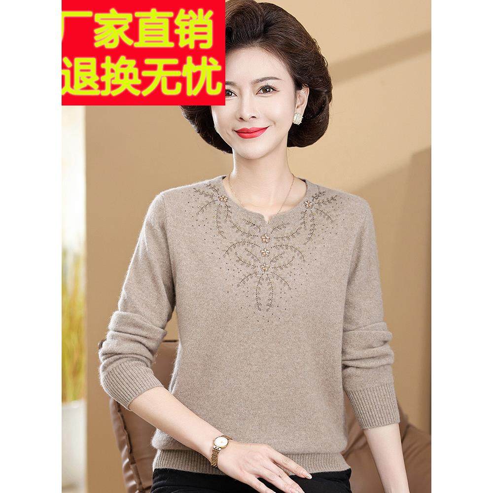 妈妈装加厚毛衣女冬装中老年羊毛衫长袖套头针织打底衫奶奶装上衣