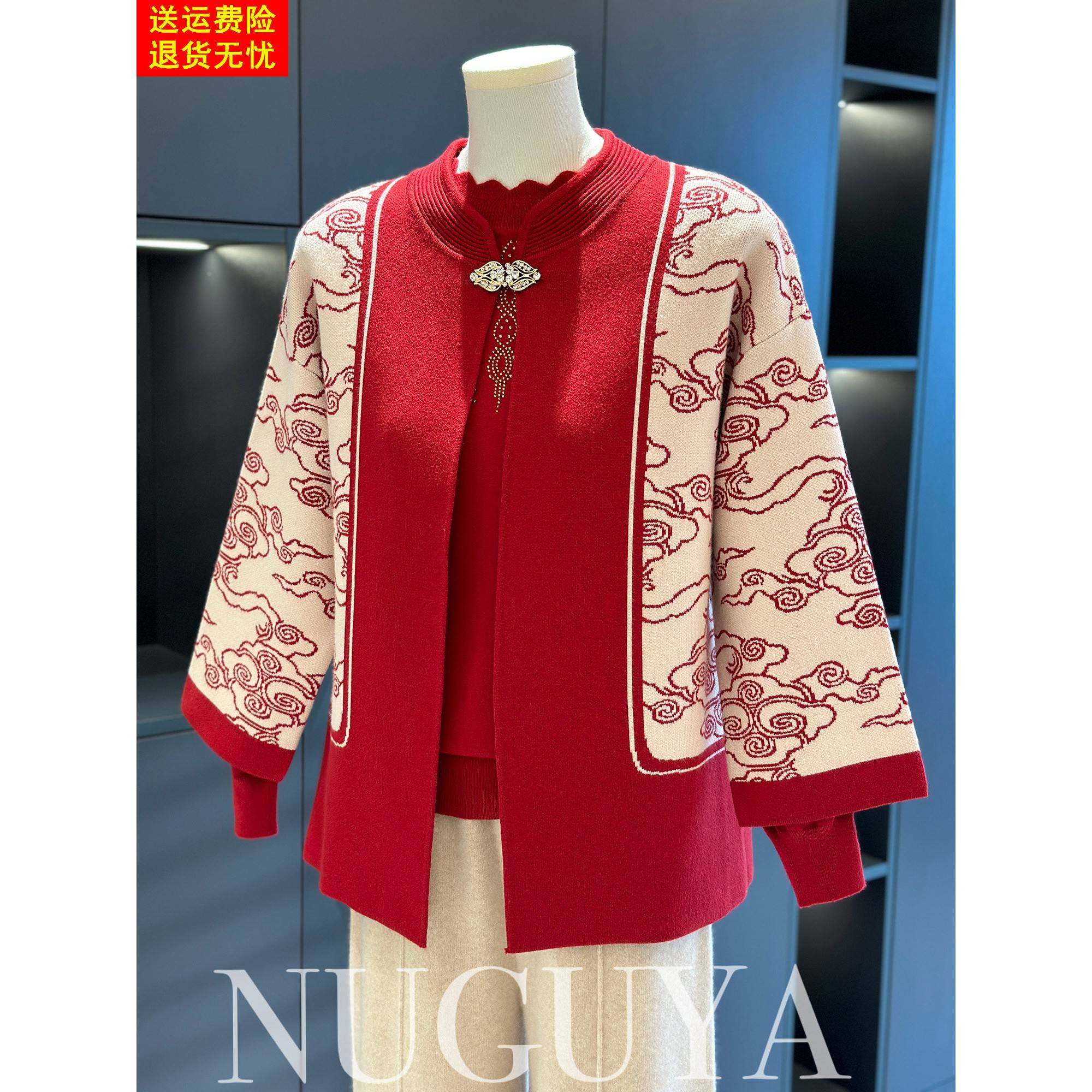 【8551】秋冬季女式针织上衣两件套中老年妈妈装加厚毛衣外套开衫