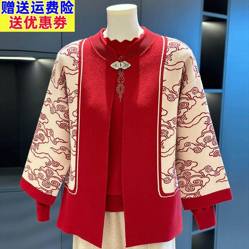 奶奶装针织两件套中老年毛衣2024秋冬新款上衣妈妈装加厚毛衣套装