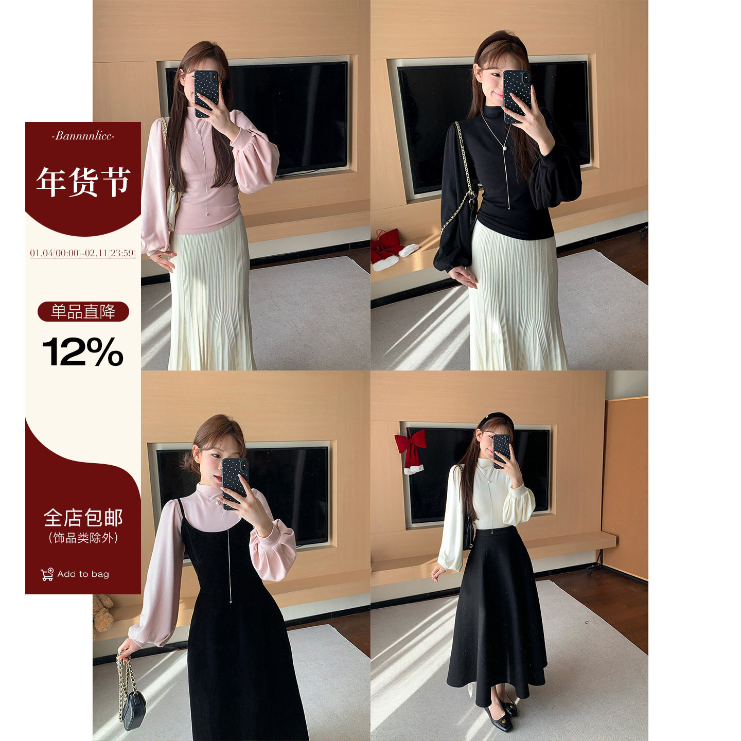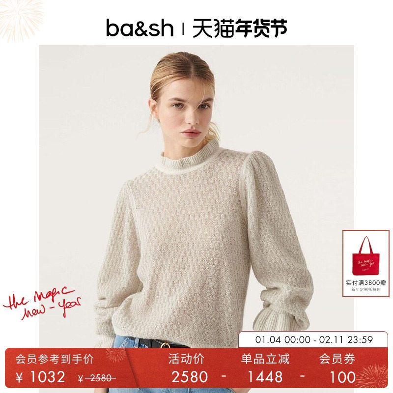 bash冬季法式气质女士上衣灯笼袖软糯针织衫长袖内搭打底1E23THOR
