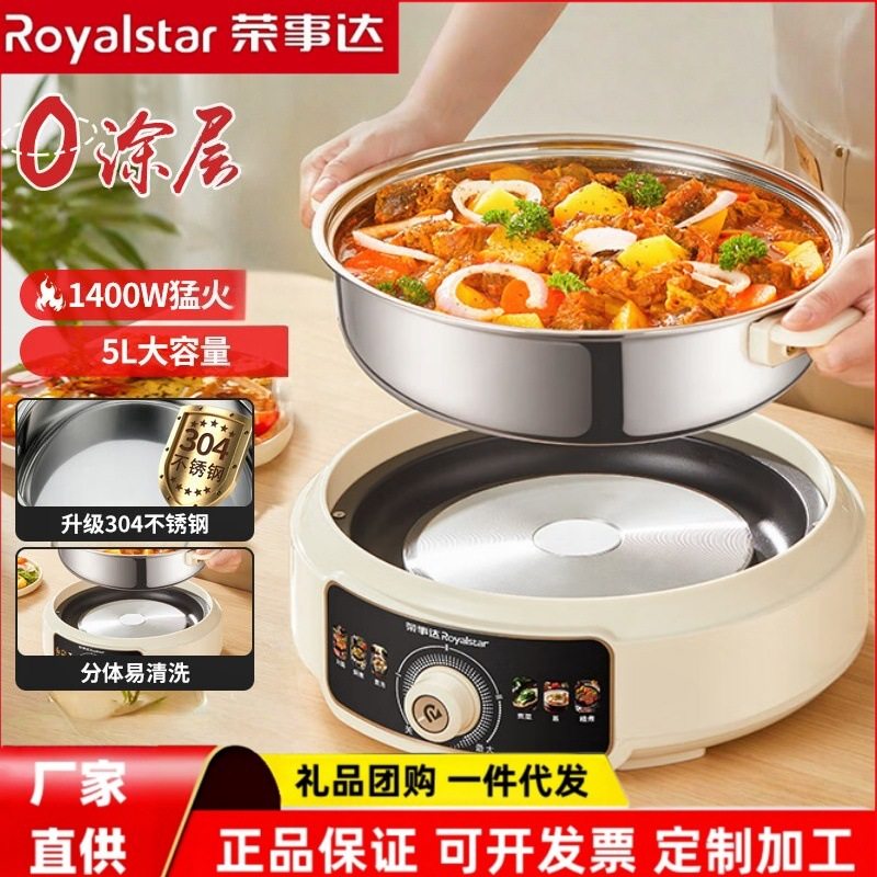 荣事达分体式电火锅家用电锅0涂层大容量304不锈钢电热锅2025新款