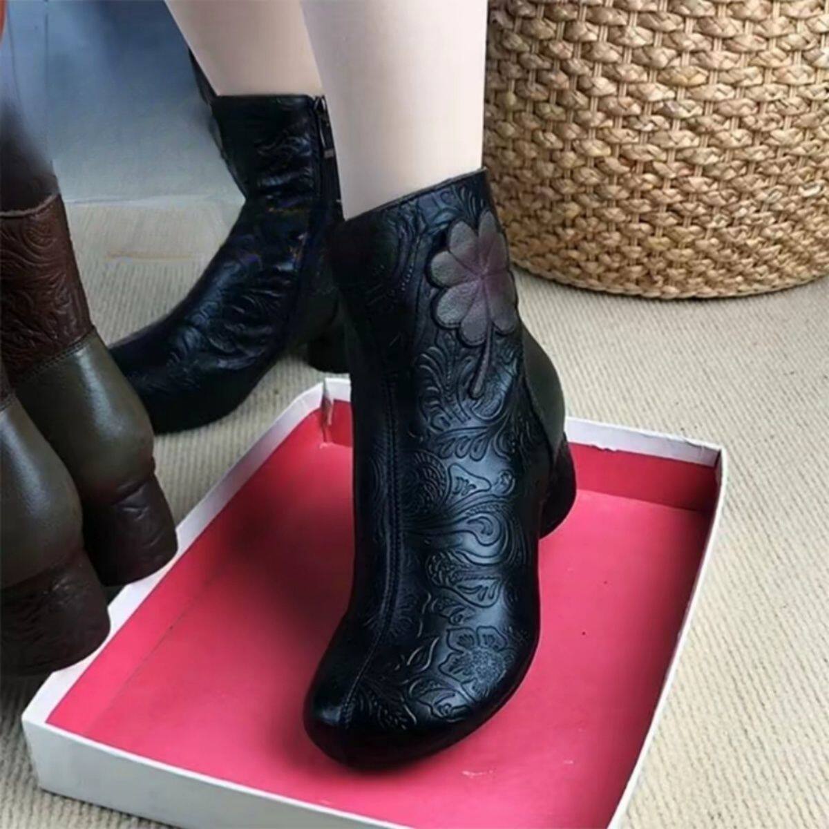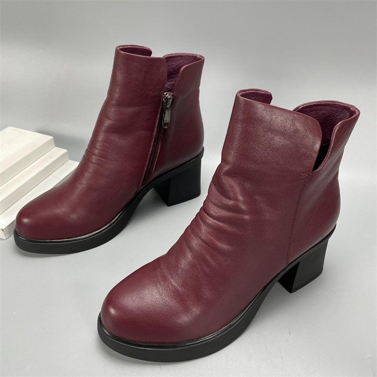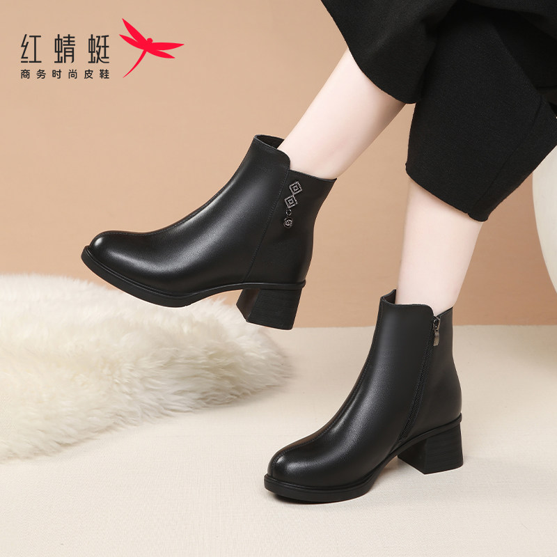 - 冬季真皮粗跟女靴