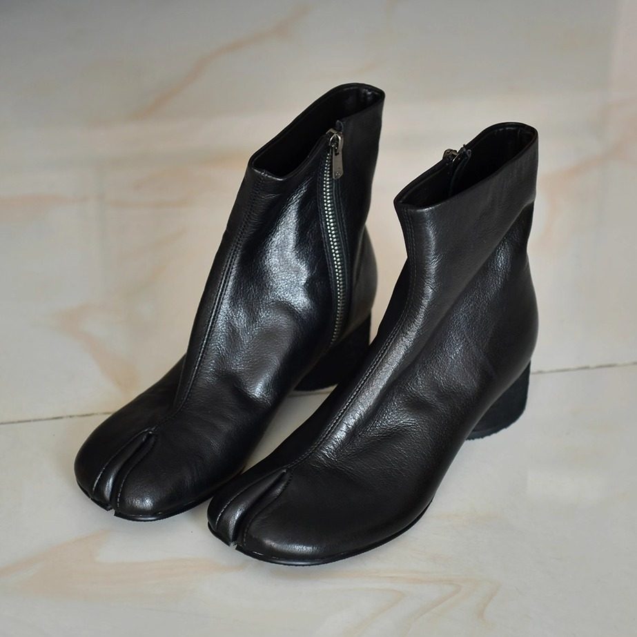 - 女真皮短靴粗跟