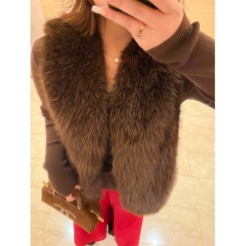 胖mm冬季环保皮草马甲木子理想大码女装简约V领蓬松感马夹200斤