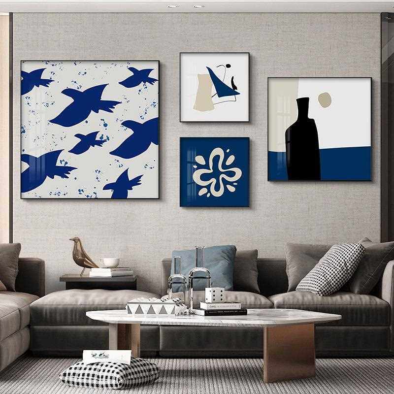 新款直销北欧装饰画克莱因蓝色组合方形组合挂画客厅沙发卧室书房
