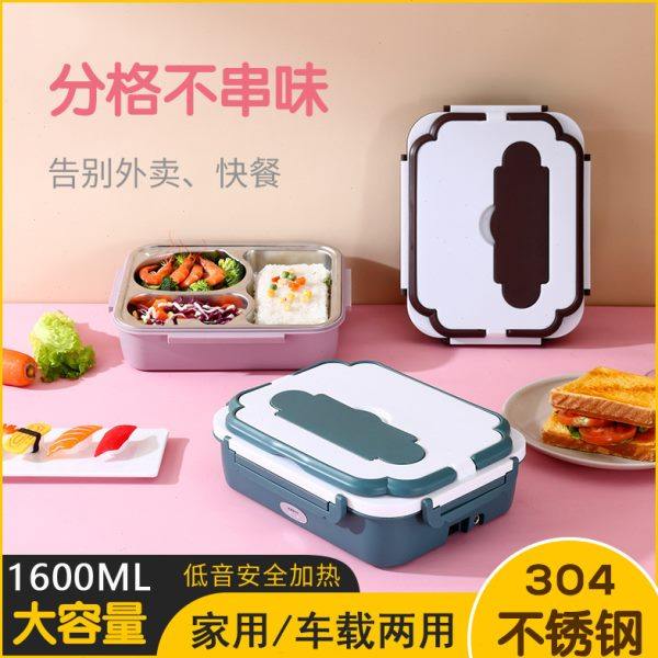 跨境充电学生大容量电热保温饭盒304内胆家用上班族电加热 饭