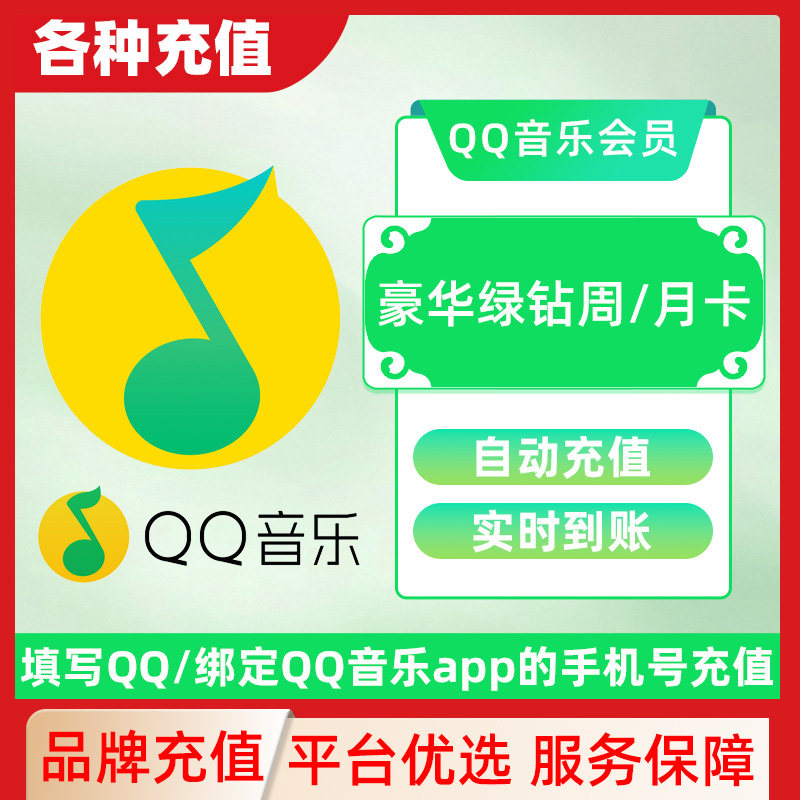 qq音乐豪华绿钻会员年卡12个月豪华绿砖vip会员一个月 充Q/手机号