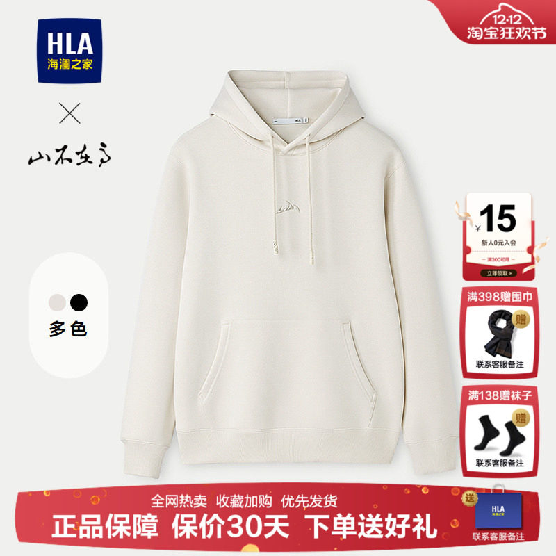 HLA/海澜之家山不在高连帽卫衣2025秋冬新款连帽刺绣柔软上衣男装