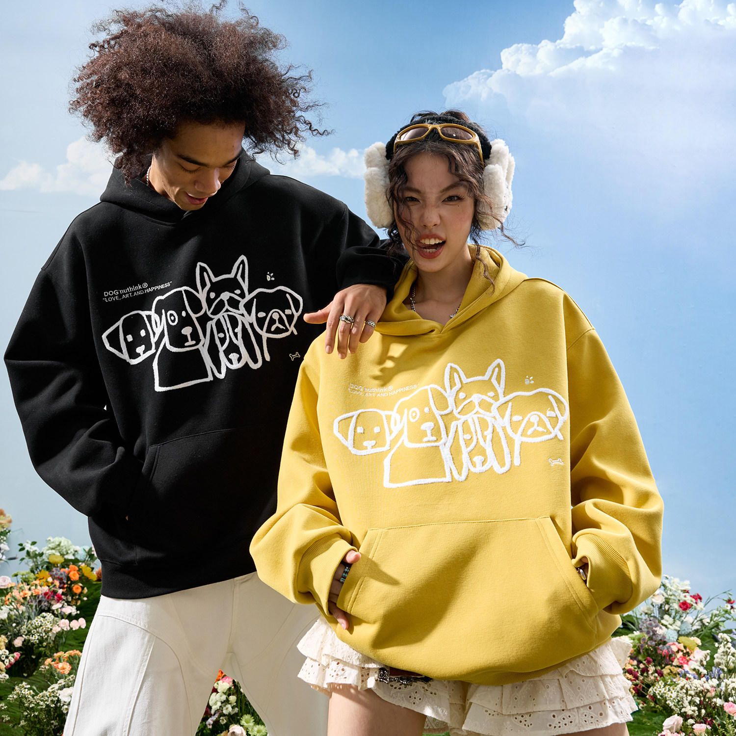 NELY小尼力连帽卫衣美式潮牌bf格子拼接卡通刺绣男女宽松拉链外套