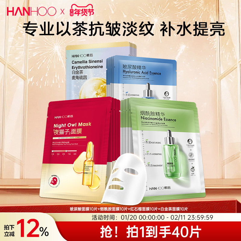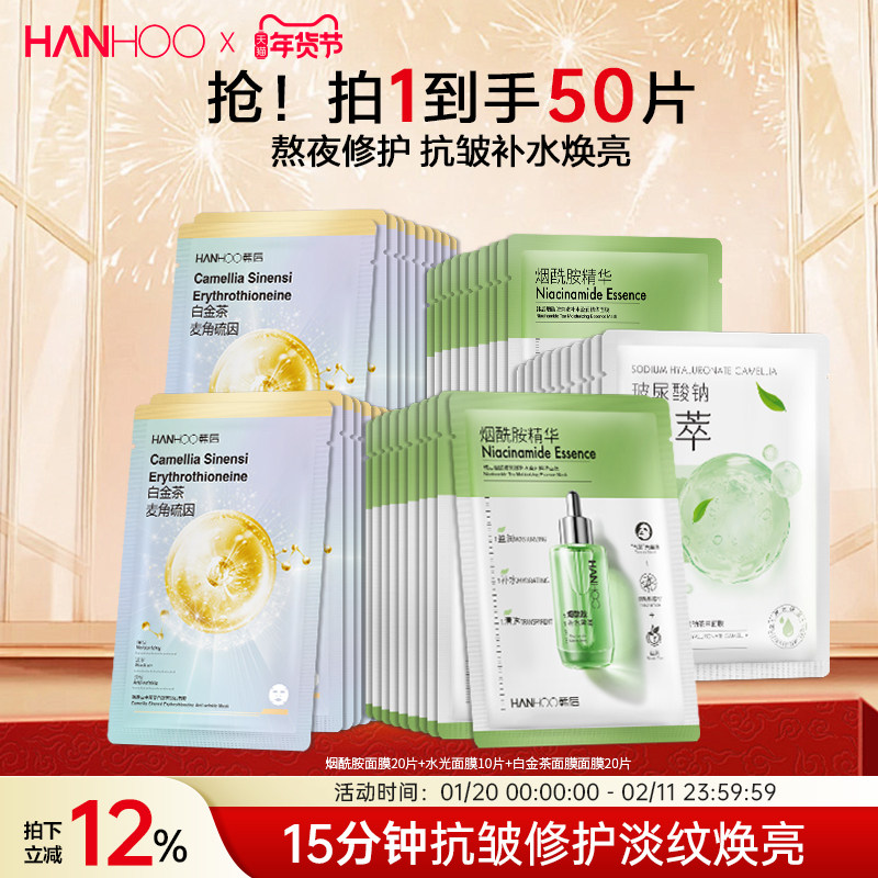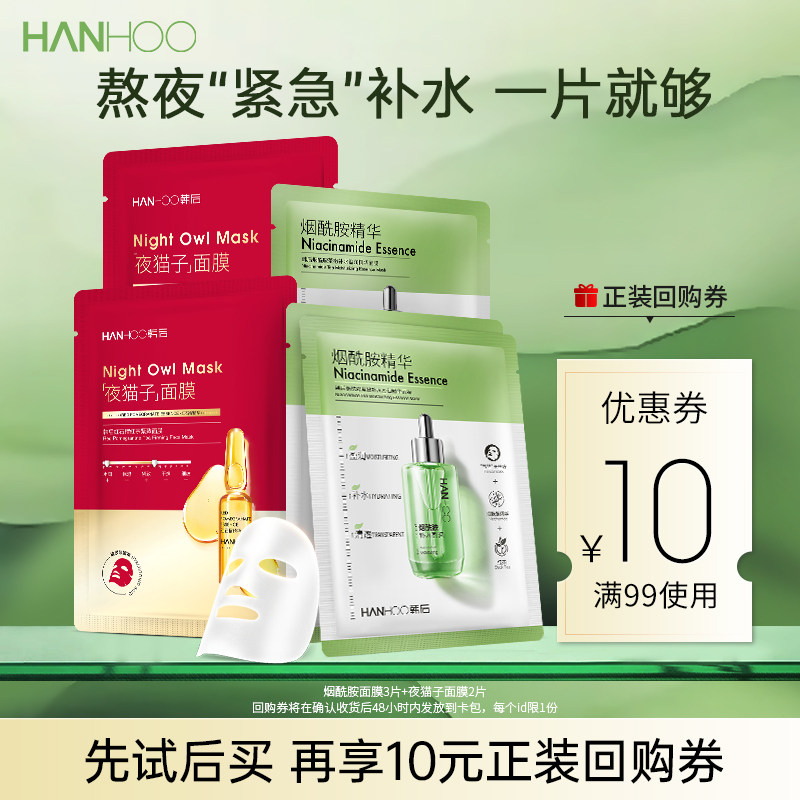 韩后熬夜修护美白抗皱面膜补水保湿烟酰胺精华贴片舒缓提亮护肤品
