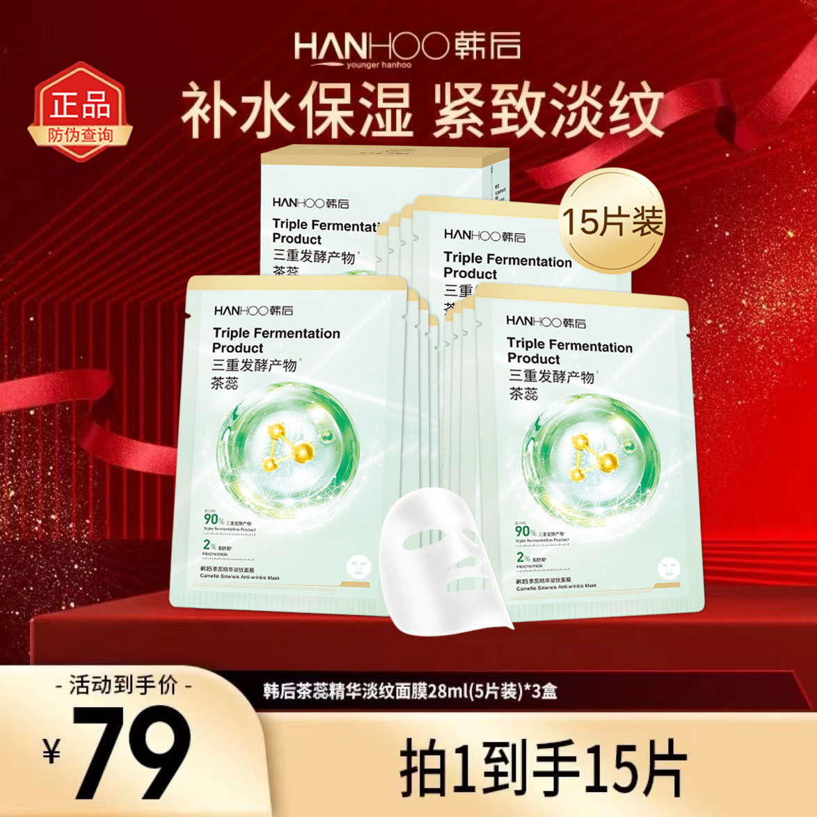 韩后茶萃玻尿酸精华面膜补水保湿修护抗氧焕亮紧致护肤贴片式正品