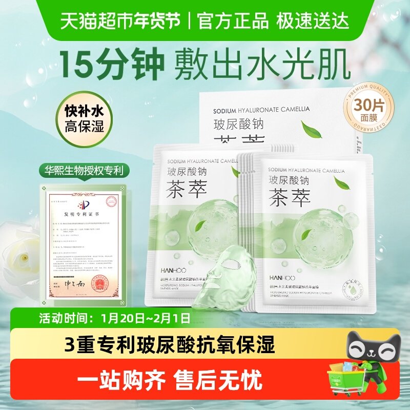 韩后面膜茶萃水光玻尿酸补水保湿干皮面膜贴女官方旗舰店正品学生