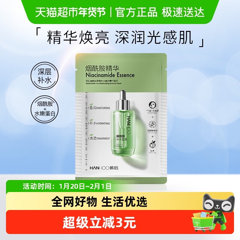 韩后烟酰胺精华面膜女补水保湿改善熬夜暗黄肌提亮肤色面膜贴正品