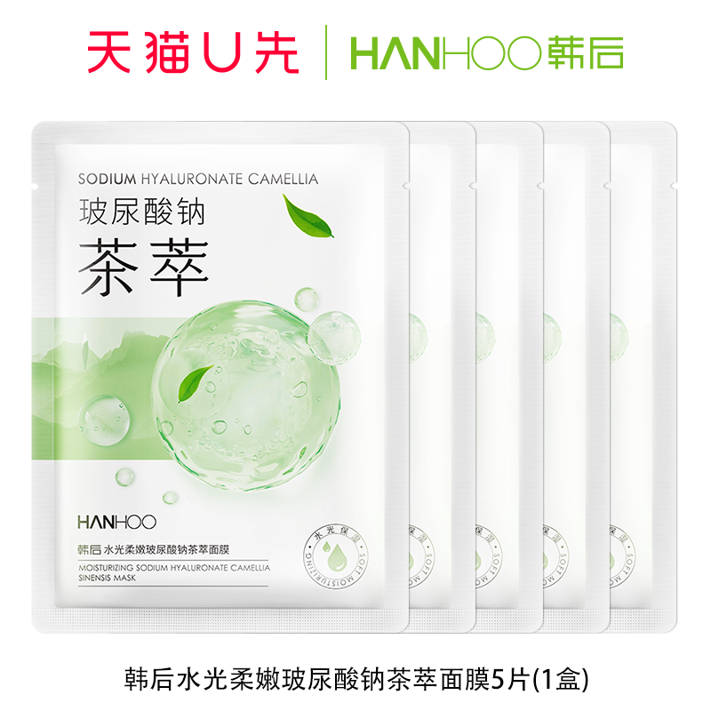 天猫U先 韩后水光柔嫩玻尿酸钠茶萃面膜5片装 试用官方正品学生女
