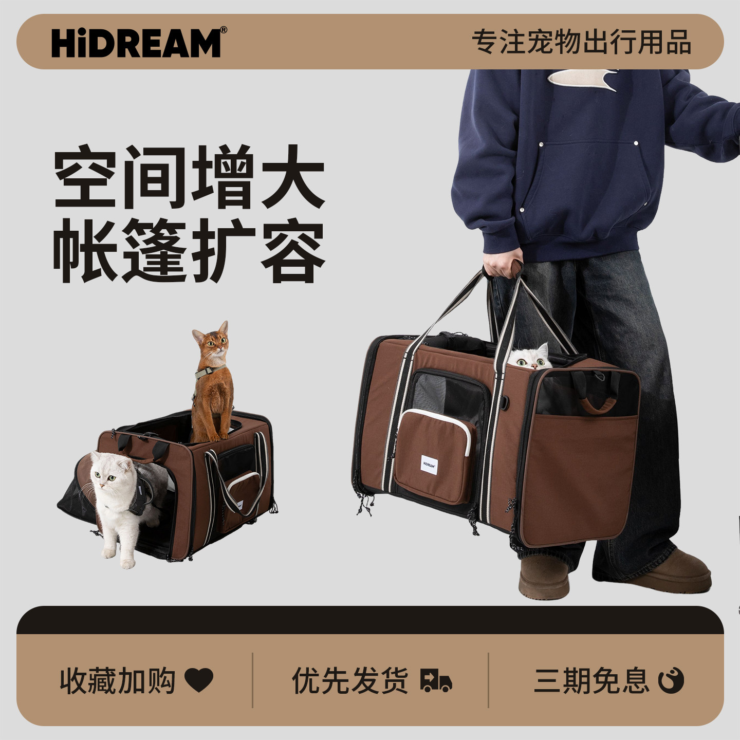 HiDREAM猫包外出便携单肩四季用轻便大容量宠物帐篷旅行包猫背包