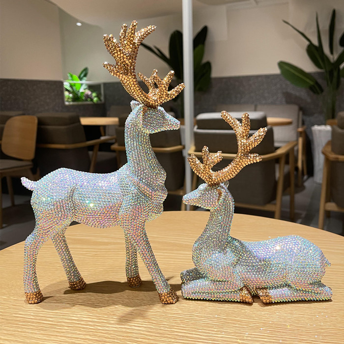 新款水晶招财麋鹿摆件高档家居高颜值客厅酒柜现代乔迁新居装饰品
