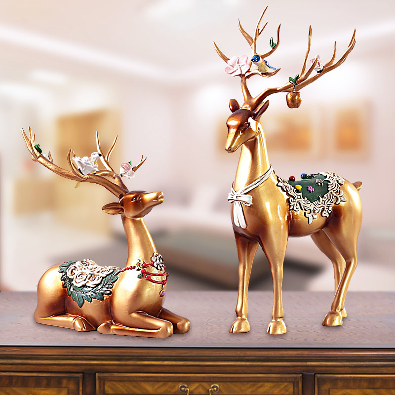创意装饰品情侣麋鹿摆件工艺电视柜家居办公室客厅桌面礼物装饰品