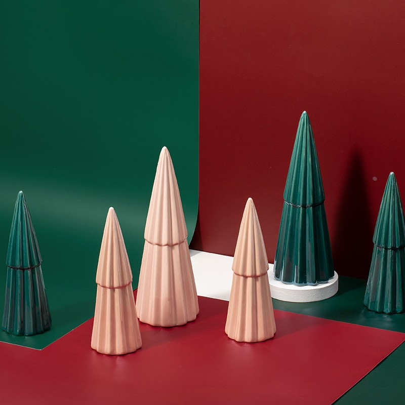 陶瓷圣诞树摆件麋鹿摆件北欧风居家圣诞桌面装饰品粉色绿色套定制