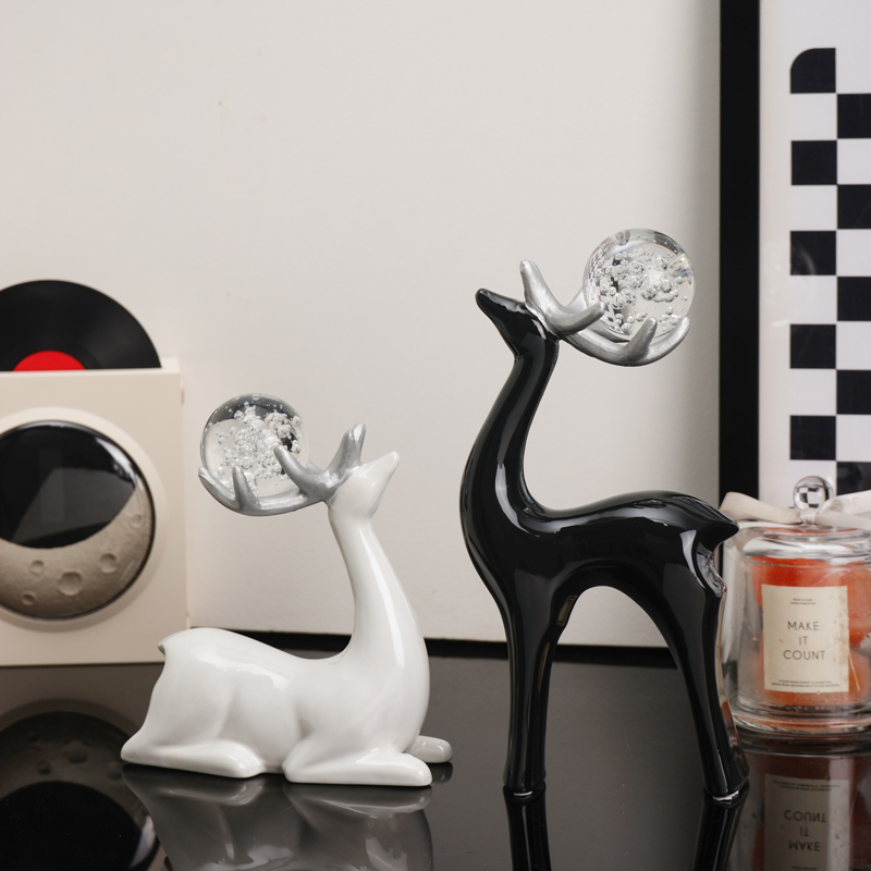 水晶球麋鹿摆件家居饰品现代客厅高档酒柜电视柜软装乔迁新居礼物
