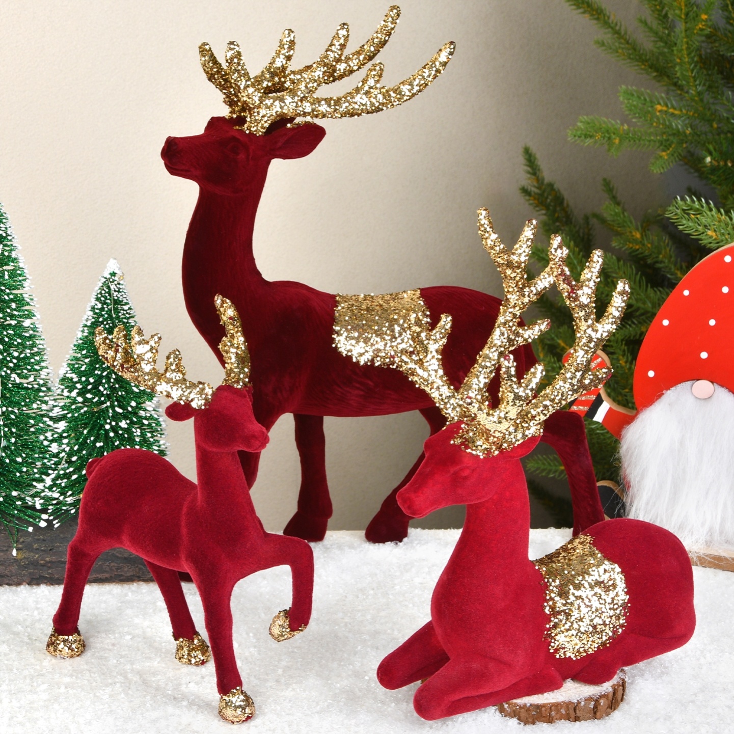 圣诞装饰酒红植绒闪粉麋鹿摆件房间装饰摆件客厅橱窗桌面ins拍照