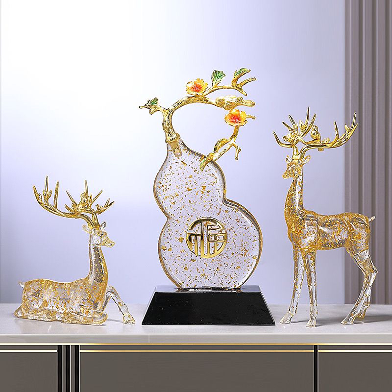 新中式葫芦麋鹿摆件办公室酒柜电视柜玄关客厅高档装饰品乔迁礼物