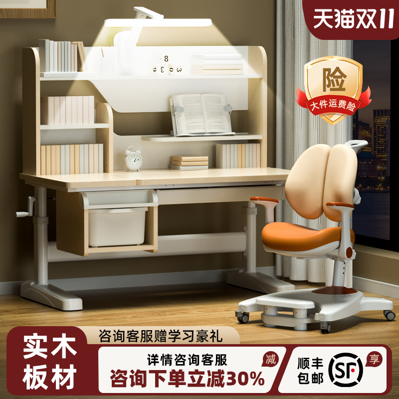 【顺丰入户】实木儿童学习书桌椅套装中小学生家用可升降写字课桌