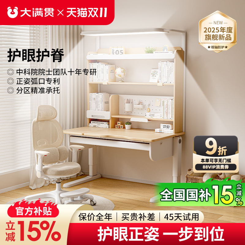 大满贯阳光桌儿童学习桌小学生一体大路灯实木升降书桌椅杉语套装