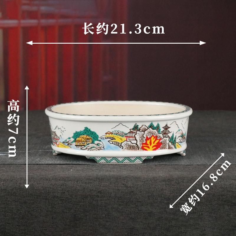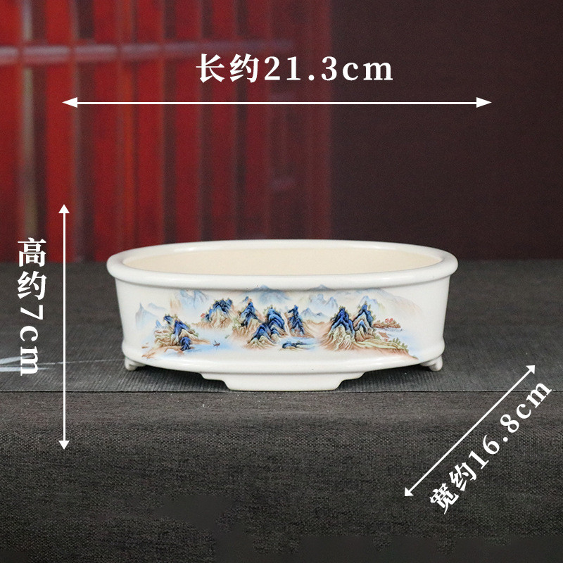 yzch31彩绘紫砂花盆阳台圆形白色创意装饰盆景盆轻奢多肉绿萝花盆