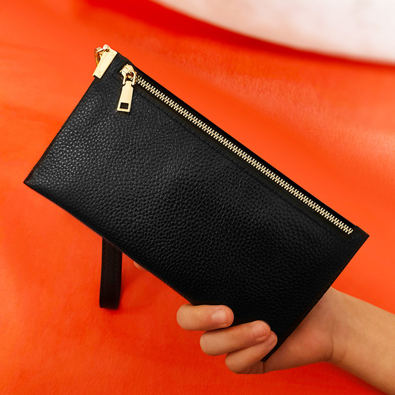 正品真皮手拿钱包女拉链零钱包薄款轻便手拎手腕手机包牛皮小手包
