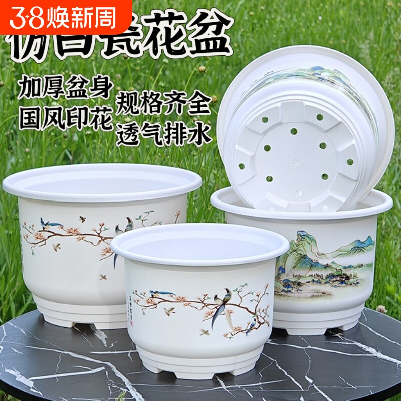 环保塑料北欧树脂花盆花卉绿植大号多肉盆庭院室内室外仿陶瓷花盆