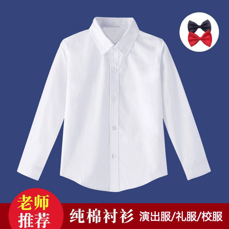 儿童白色衬衫长袖男童女童白衬衣纯棉春秋中大童表演服小学生校服