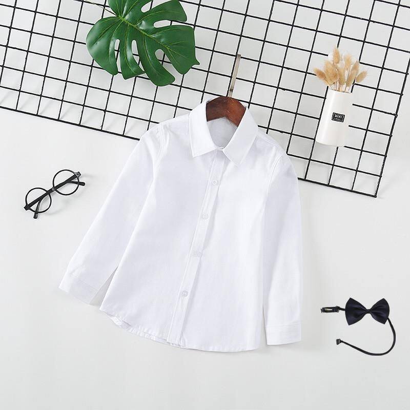 儿童白衬衫男童长袖小学生校服运动会毕业照合唱表演女童白色衬衣