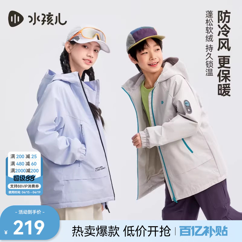 水孩儿童装外套加绒2026新款春季防水女大童户外厚风衣男童上衣