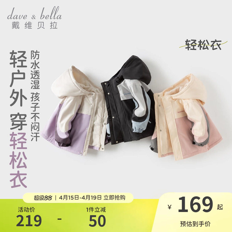 戴维贝拉童装儿童外套男童防水风衣春装户外服女童摇粒绒衣服大童