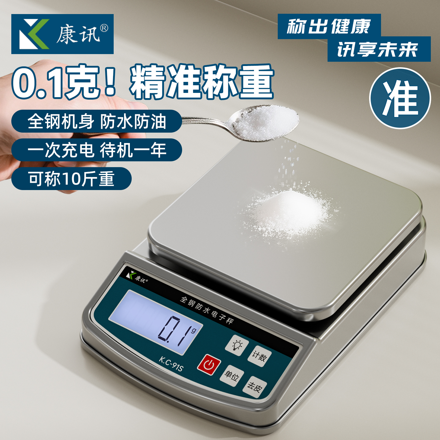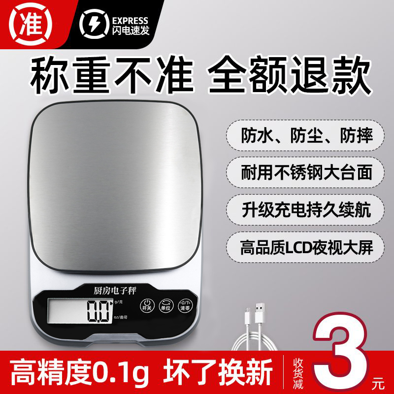 电子秤家用厨房称食物烘焙克数秤精准充电防水304全钢防水食物称