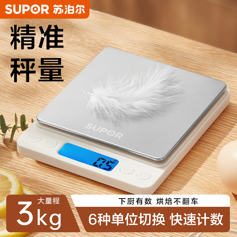 苏泊尔电子秤厨房称克食物称烘焙专用精准小型克数食品秤家用台秤