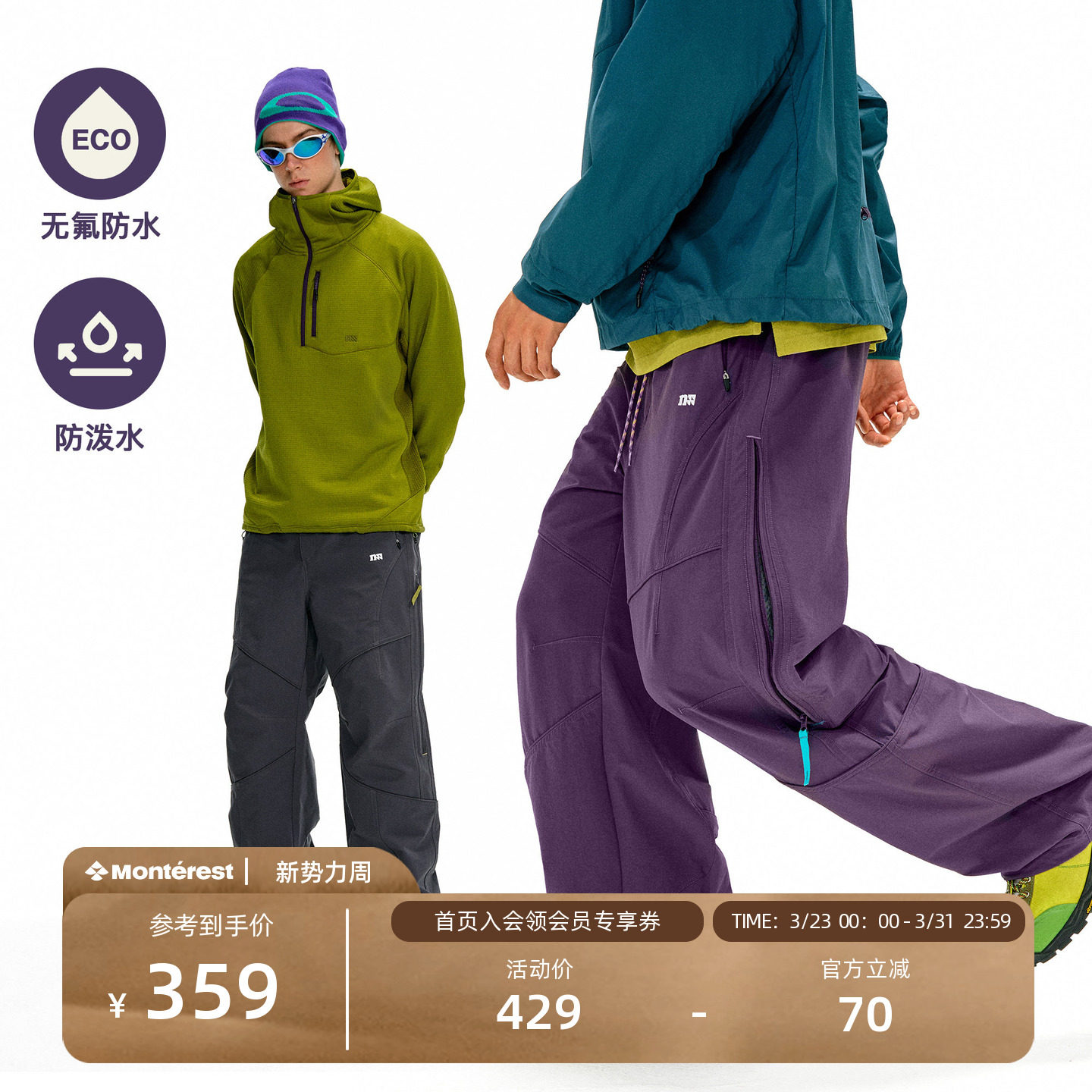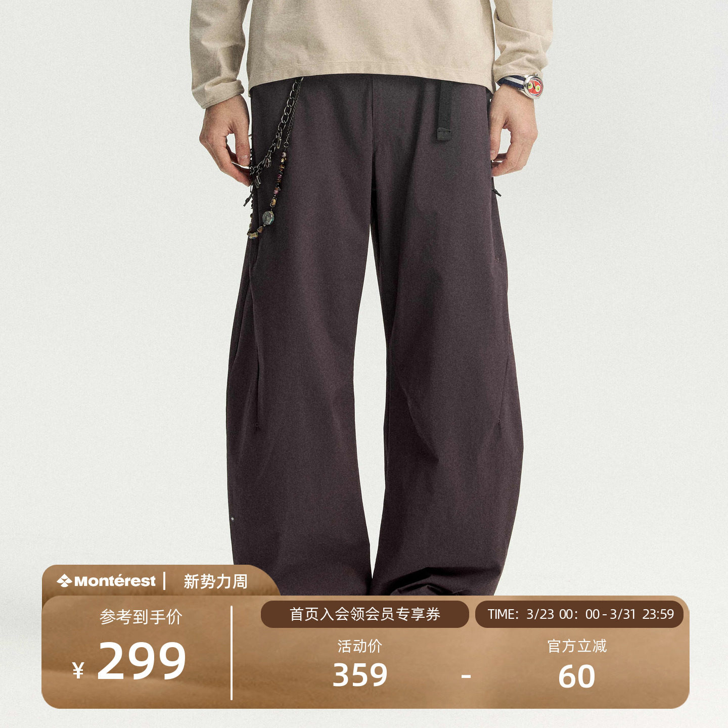 瞬时山野Monterest马年限定户外防泼水基础宽松弯刀软壳裤休闲裤