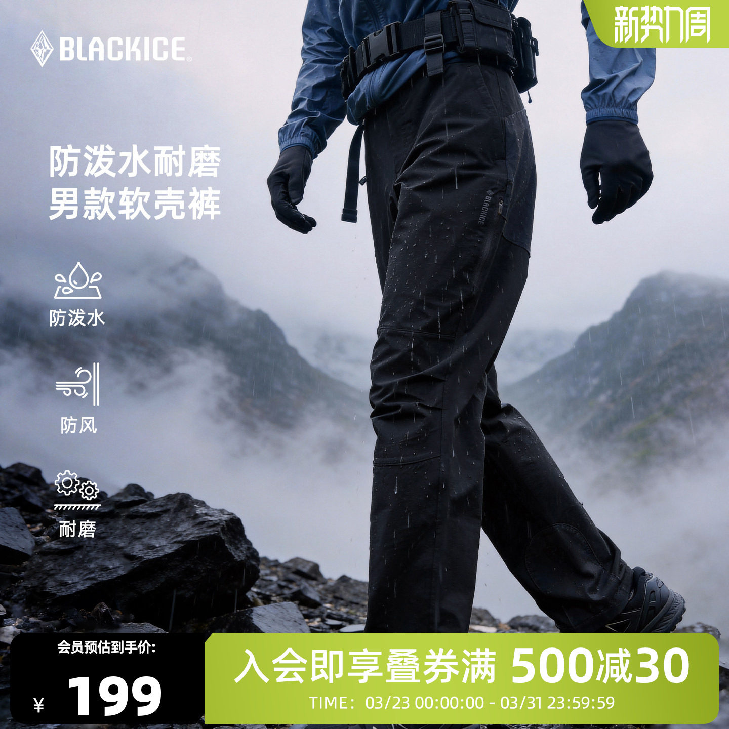 黑冰户外软壳裤春夏男款耐磨徒步登山裤透气薄冲锋攀岩长裤子2605