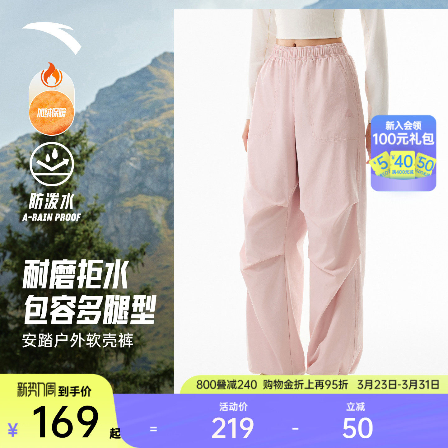 安踏山壳裤丨大地之壳户外伞兵裤女士休闲软壳裤宽松直筒运动长裤