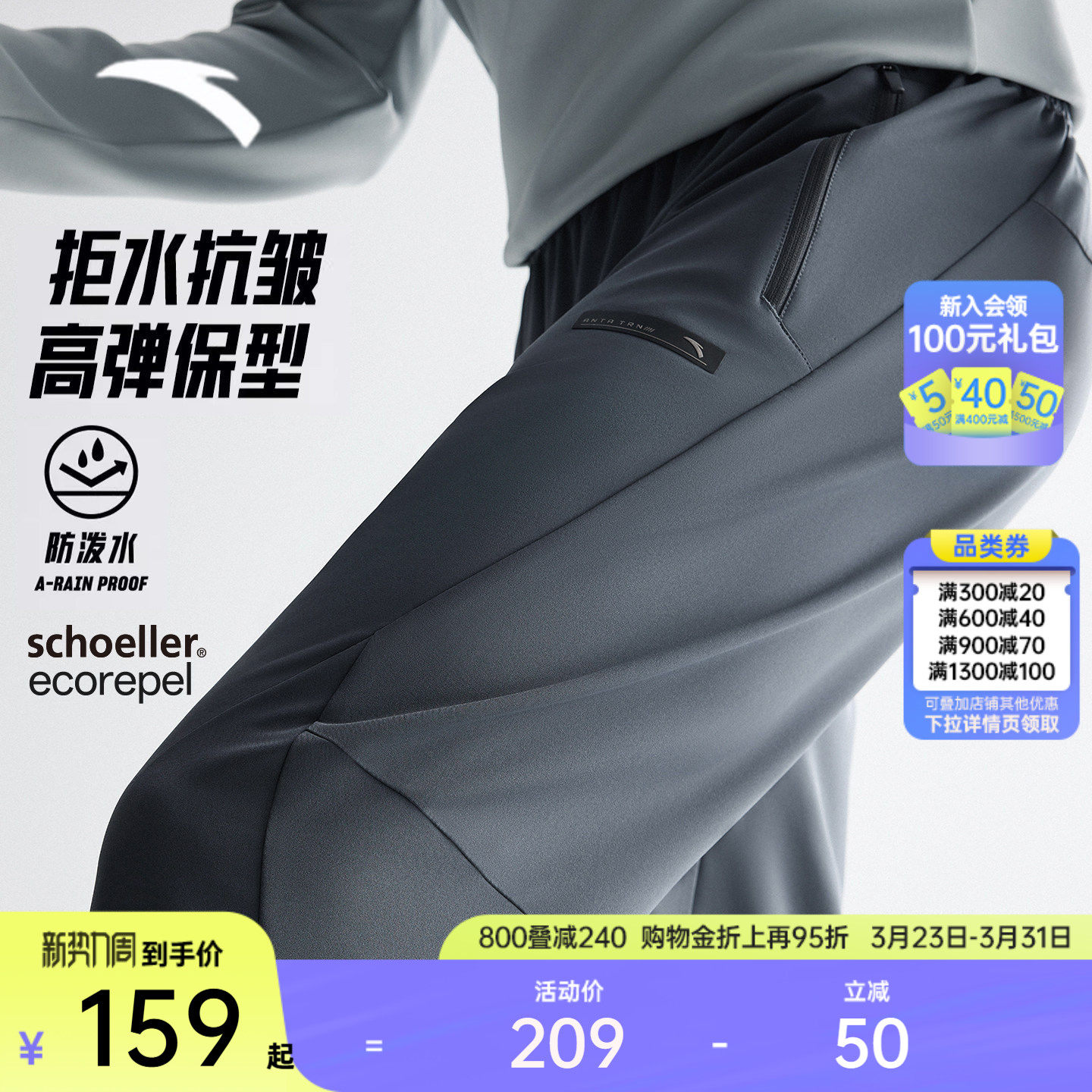 安踏三防户外裤丨大地之壳3.0梭织运动长裤男士春季直筒软壳裤子