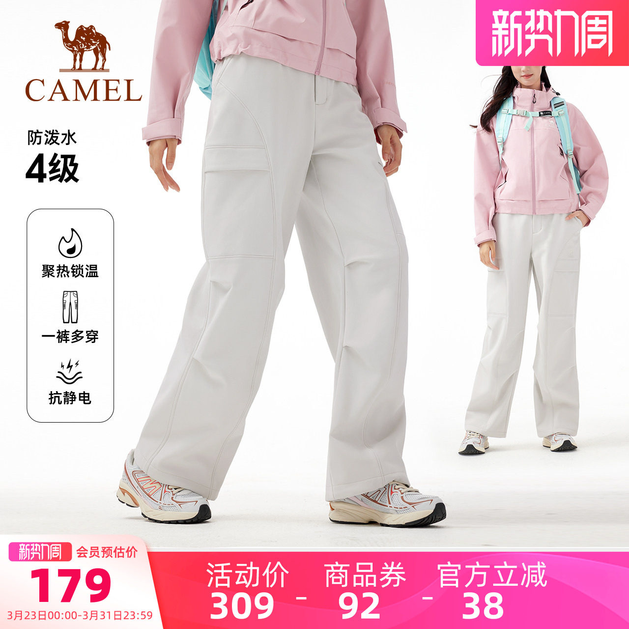 火山岩发热|骆驼户外冲锋软壳裤男春季薄绒防风耐磨徒步登山裤女