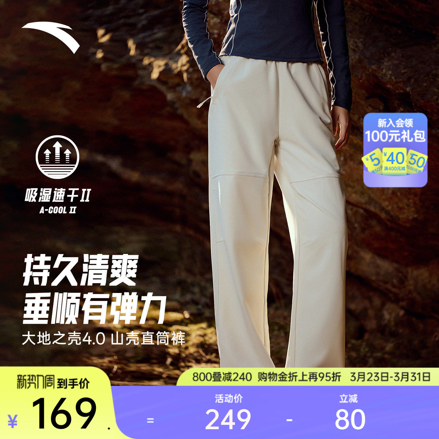 安踏山壳裤丨大地之壳运动长裤女裤春季户外直筒软壳裤登山伞兵裤