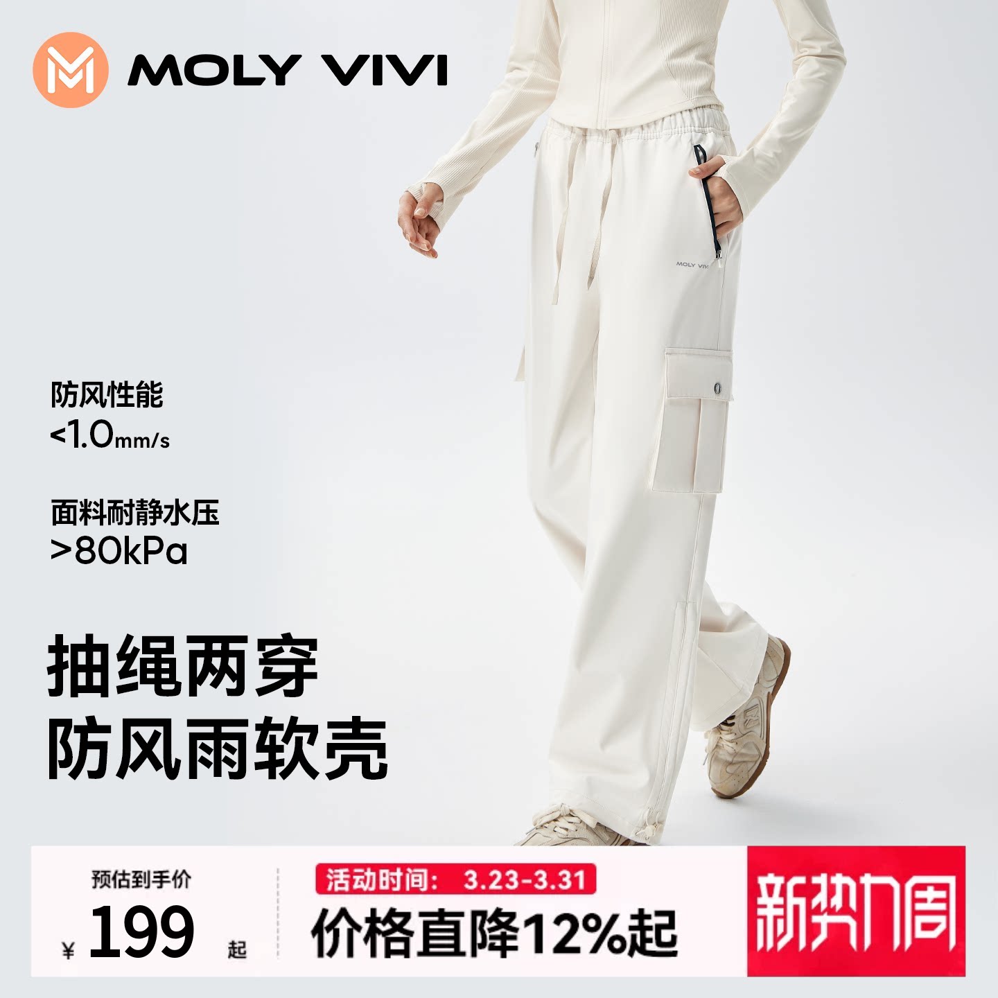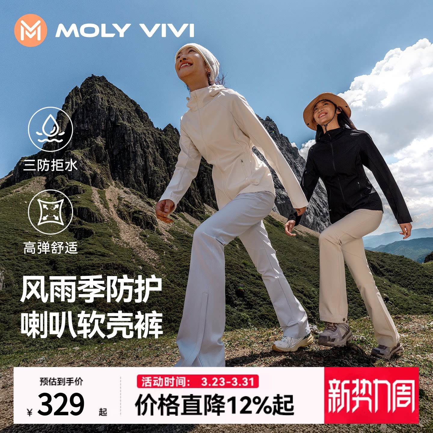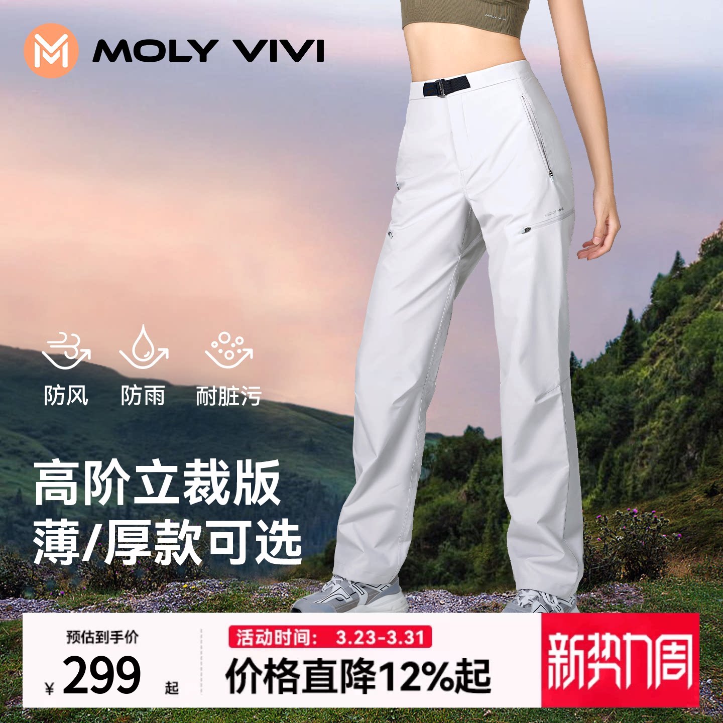 沈梦辰同款MOLYVIVI冲锋软壳裤女户外休闲滑雪裤防风防水登山裤夏