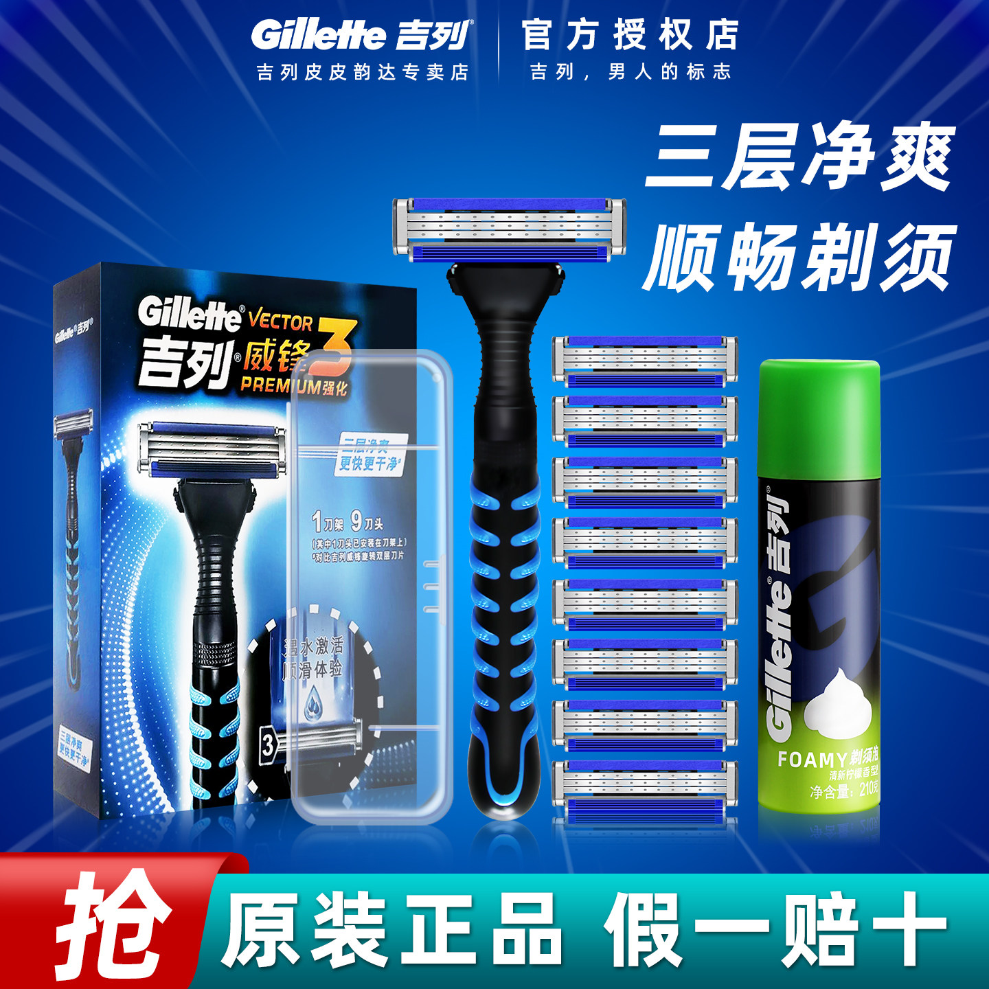 吉列威锋3手动剃须刀进口男士锋速刮胡刀3层刀片1刀架9刀头套装