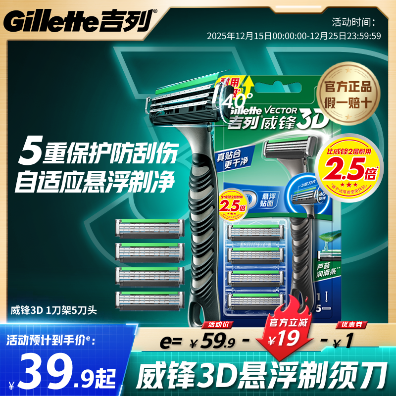 吉列剃须刀威锋3D男士手动刮胡刀老式刮胡子刀胡须刀片防刮伤正品